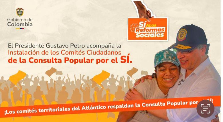 El presidente Gustavo Petro encabezará este jueves la instalación oficial de los Comités Ciudadanos de la Consulta Popular por el Sí, durante un acto que se llevará a cabo en la plaza de Soledad, Atlántico.