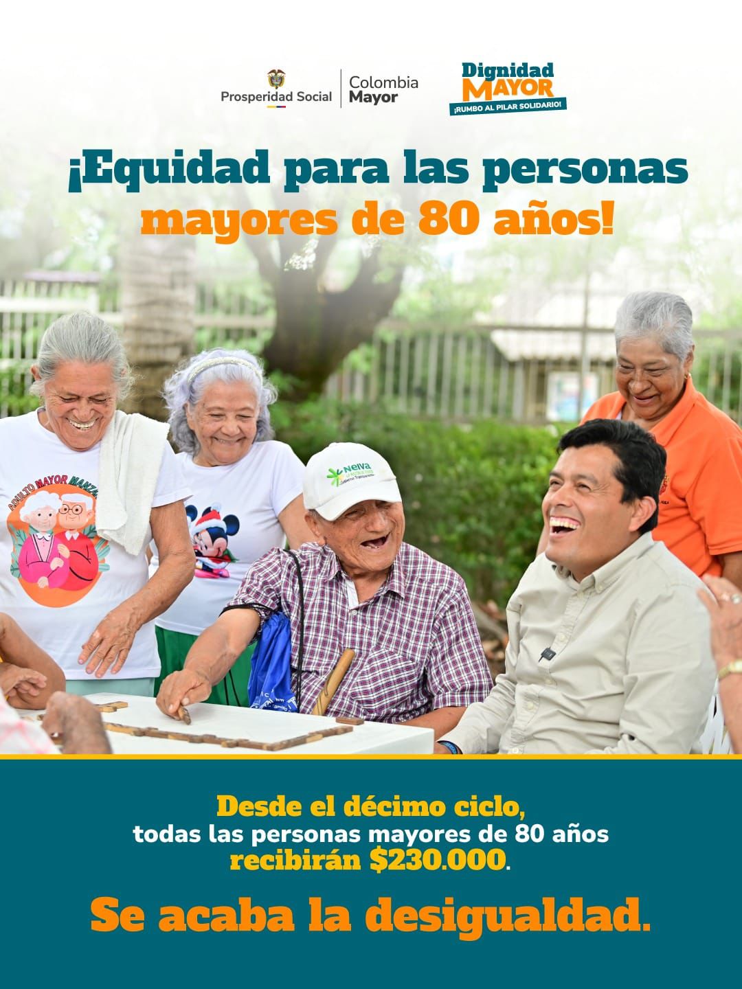 Continuando con el proceso de equidad, Prosperidad Social también informó que las personas mayores de 80 años recibirán un monto equivalente al incremento establecido para todos los beneficiarios, cabe destacar que este décimo ciclo estará habilitado hasta el 14 de noviembre del presente año.