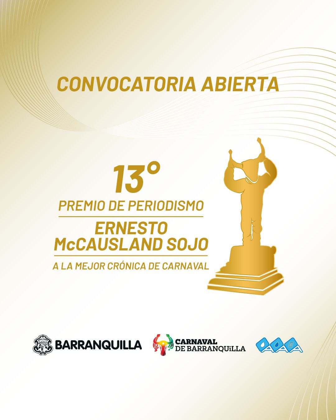 Carnaval de Barranquilla y Triple A presentaron la decimotercera edición del Premio a la Mejor Crónica de Carnaval Ernesto McCausland Sojo, un reconocimiento que honra la memoria de este destacado periodista y cronista barranquillero, y exalta el papel del periodismo en la preservación y difusión del Carnaval de Barranquilla.