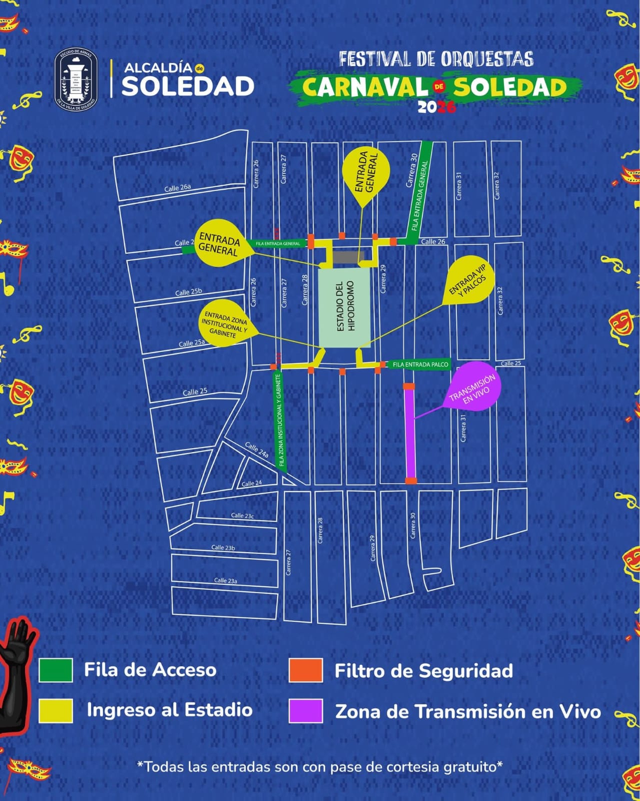La Alcaldía de Soledad advierte que los pases son gratuitos, cuentan con QR oficial y cualquier entrada falsa será destruida en el ingreso