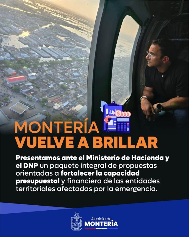 Con estas propuestas, Montería busca fortalecer su capacidad presupuestal y financiera para atender la crisis, proteger a las familias afectadas y avanzar con firmeza en la recuperación. Montería volverá a brillar.