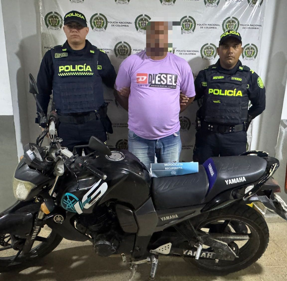 La Policía Nacional en el municipio de Luruaco logró la captura de un ciudadano por el delito de receptación y la recuperación de una motocicleta que había sido reportada como hurtada, en hechos ocurridos en el barrio 11 de Noviembre.